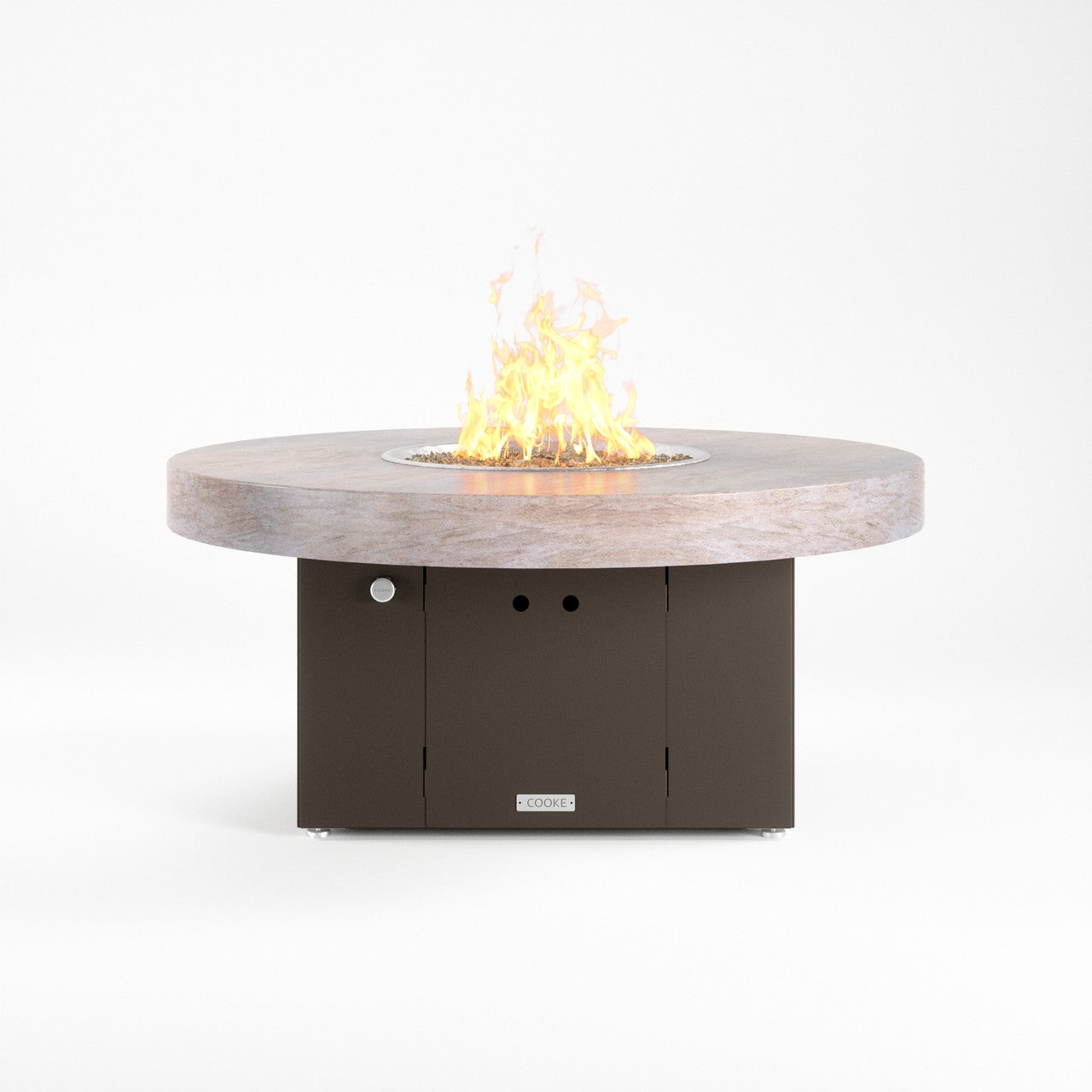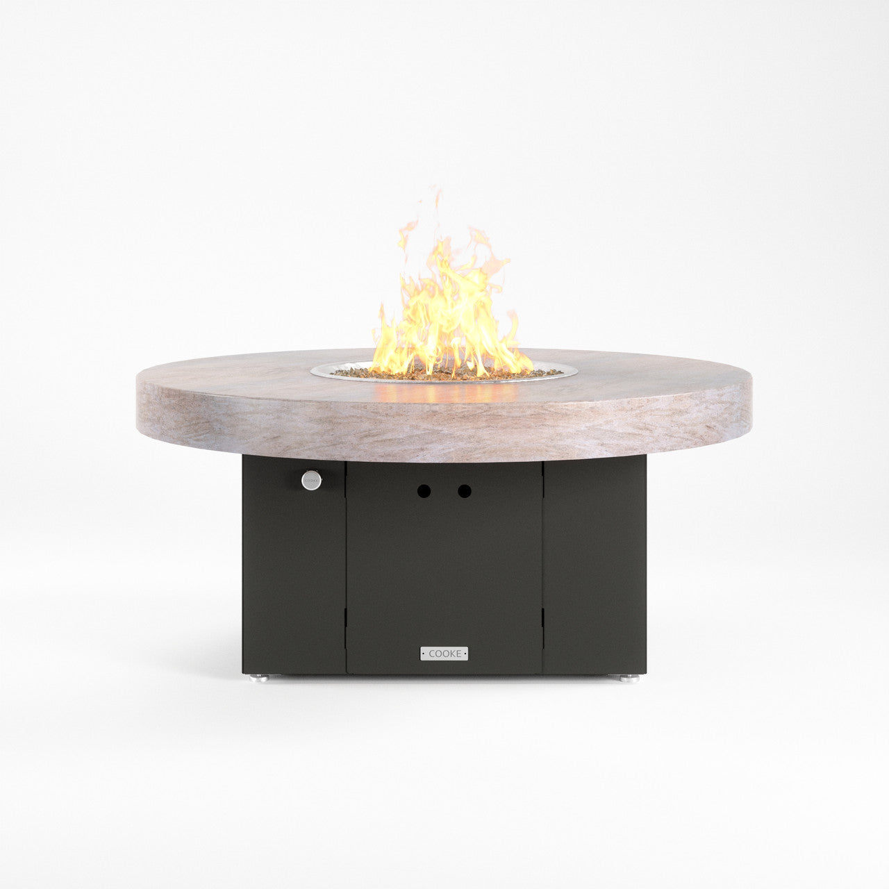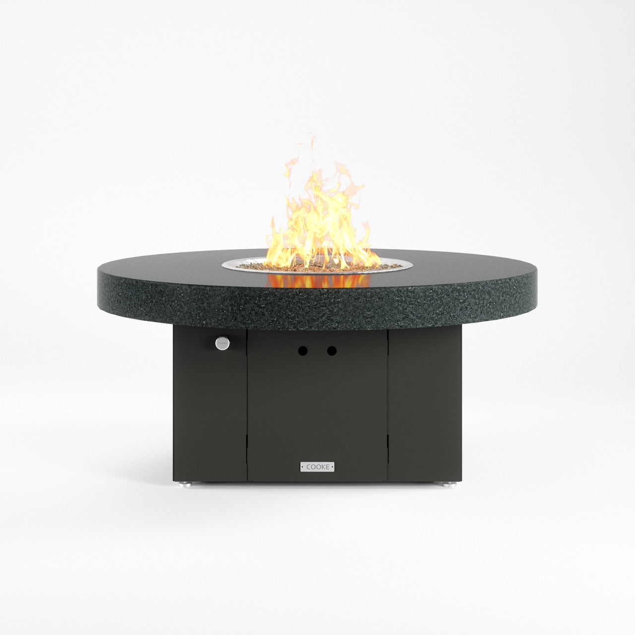 The 48" round Santa Barbara fire pit table is the perfect medium size and accommodates seating up to 4. Our customers love this table's stain resistant aluminum, granite, or real marble table top which has plenty of room for small plates and drinks. COOKE produces some of the finest fire pit tables in the industry which can be seen in the level of detail brought to the table top surface. Finally, a fire pit table with a premium table top! COOKE Santa Barbara granite and marble tops are cut from one solid slab of stone. The 48" round features a 6cm stacked edge allowing the stone's colors and textures to play out naturally. Granite and marble are very durable when compared to porous concrete and can add more depth and character if desired. Cover up the fire pit with the stainless steel burner lid and this table doubles as a premium outdoor stone table.