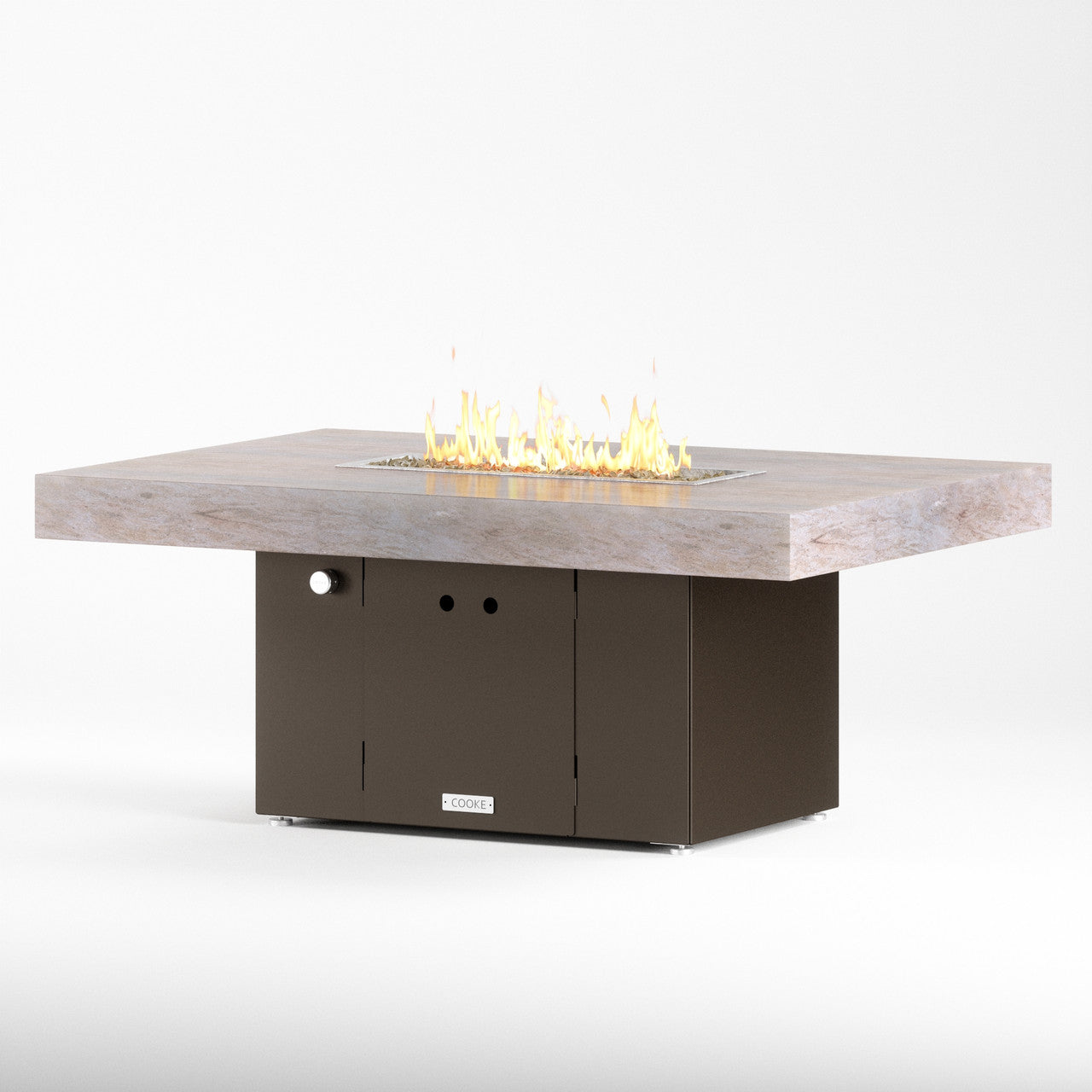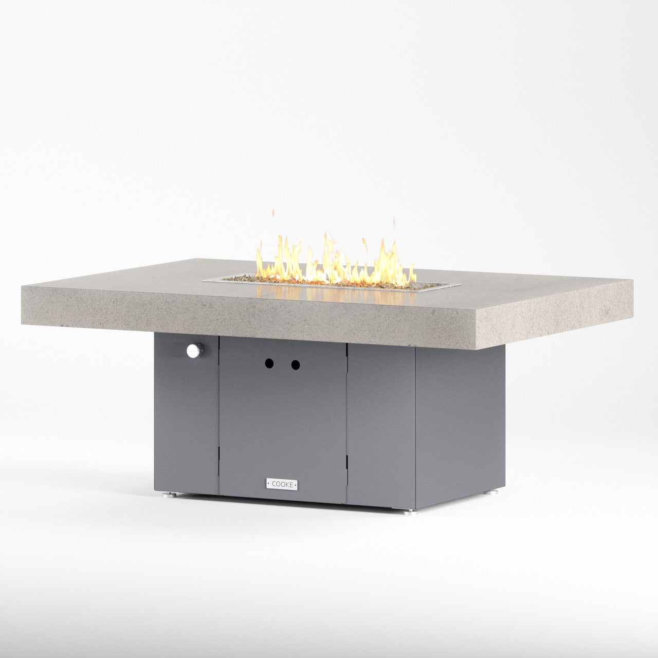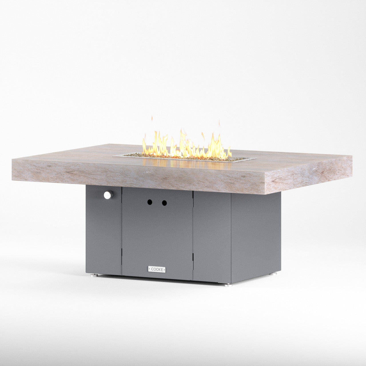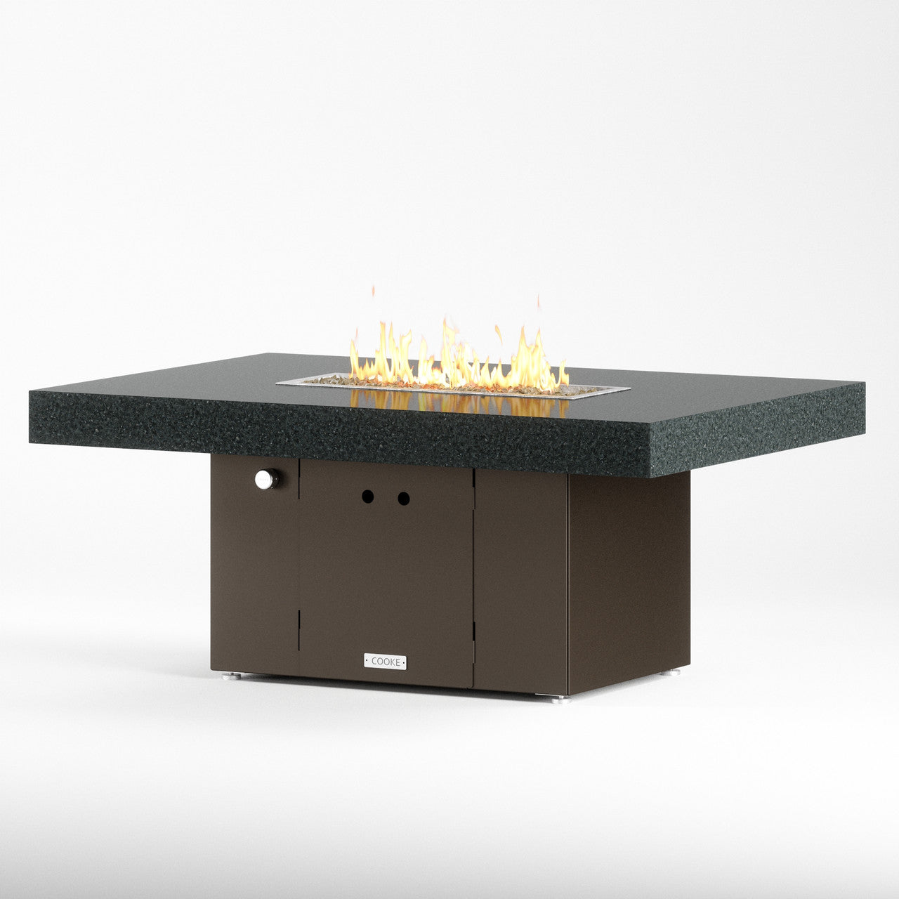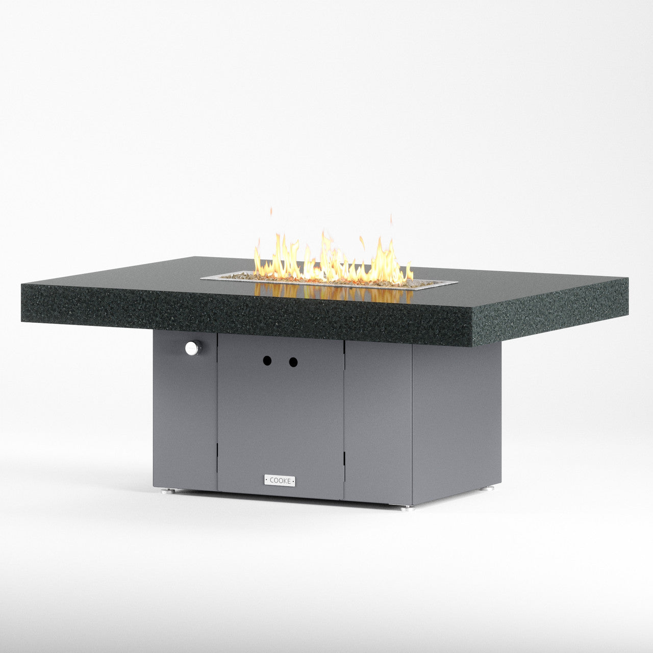The Santa Barbara outdoor fire pit table is Cooke’s tribute to a contemporary function design. This table features oversized cantilevered granite top on a solid, simple straight sided base. At COOKE your choose your colors. Perfect for your own courtyard, backyard, or garden sanctuary. Built with the same legendary Cooke durability, this table conveys and impression of permanence, tranquility, and comfort. Our customers love this table's stain resistant granite surface, stainless steel leveling feet, and plenty of room for small plates and drinks. Cover up the burner and this table is a stylish and functional garden table.