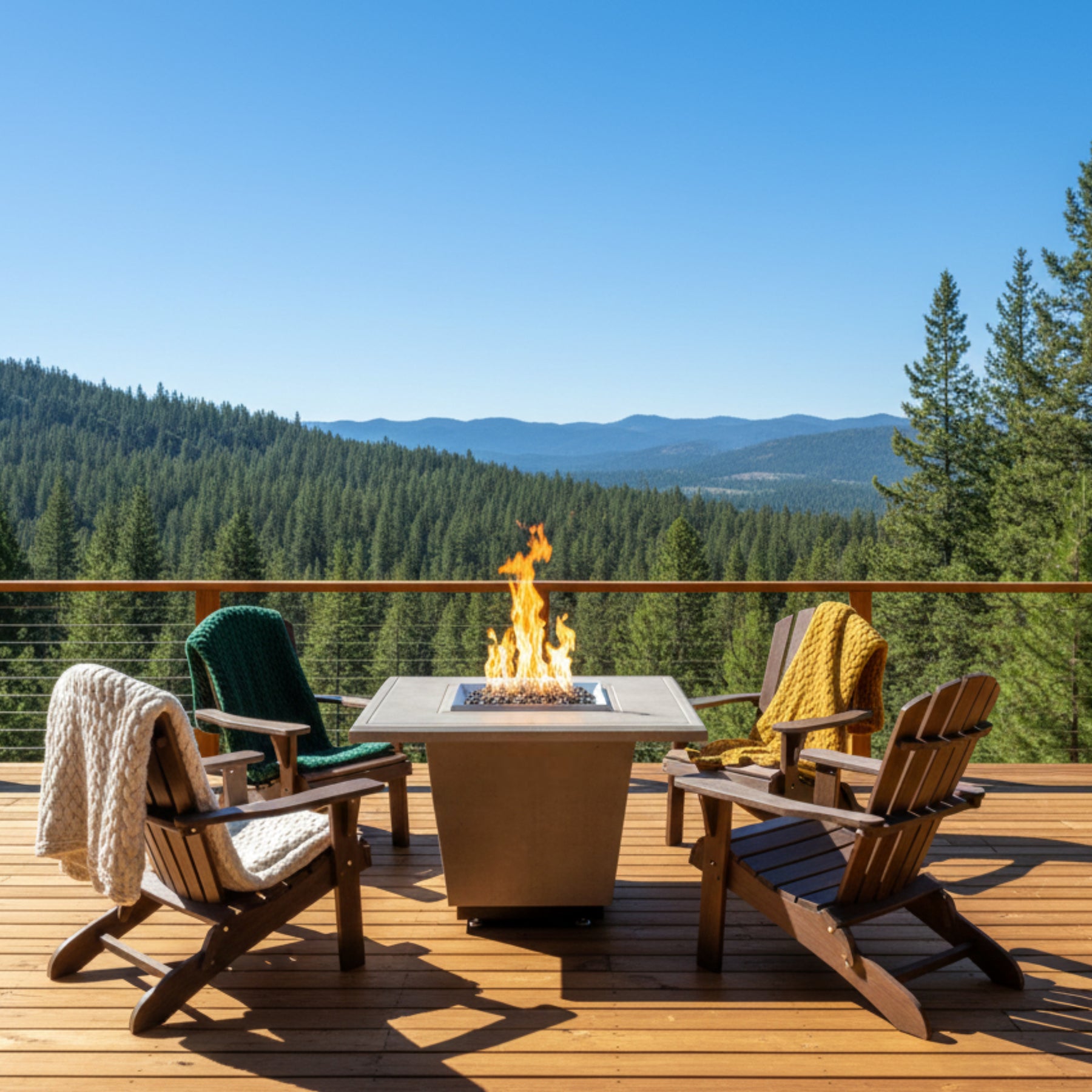 With its sleek and contemporary design, the American Fyre Designs (AFD) Cosmopolitan Square - Chat Height Firetable will accentuate your outdoor living area and create a warm gathering place for entertaining guests or a conversation with family and friends. Our Firetables create the perfect ambiance for enjoying an outdoor meal or cocktail while also keeping you warm from the evening chill. As twilight descends, the firetable comes to life, its dancing flames casting a mesmerizing glow across the gathering.