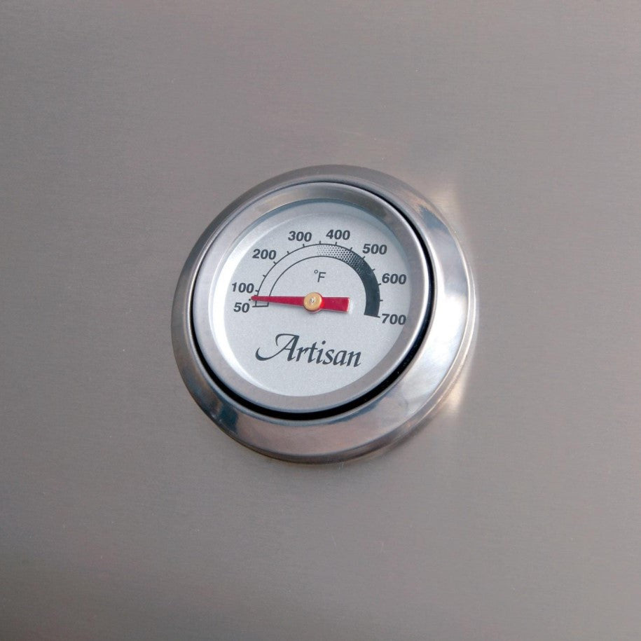 Offering an impressive array of features, the Artisan American Eagle Series provide a luxury experience at an affordable price. Made in the USA from 304 stainless steel, the 36-Inch AAEP-36-LP built-in propane gas grill features a seamless welded double-walled hood for exceptional heat retention, as well as a full length handle and an easy-open spring-assisted system. Three stainless steel tube U-burners each produce 20,000 BTUs, which evenly distribute high heat across the cooking surface. Electrical wires and connectors are encapsulated with heat-resistant silicone, making the 9v electrical ignition system fast and reliable, while the fully-adjustable brass valves ensure precision flame control. The stainless steel cooking grates are durable and easy to clean, and the dual-position warming rack lifts up and out of the way when not in use for additional workspace. Providing protection from the elements and helping maintain the beauty of your grill, the control panel is recessed, keeping chrome knobs and switches out of the way. Experience more comfortable grilling with the unique Artisan air curtain chimney design, which keeps controls cool to the touch, even with lid closed. A built-in hood thermometer displays accurate temperatures for easy oven roasting.