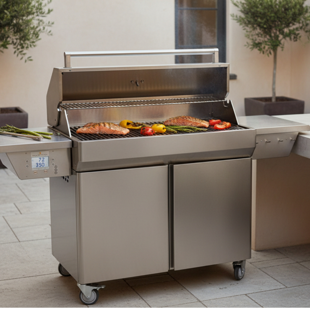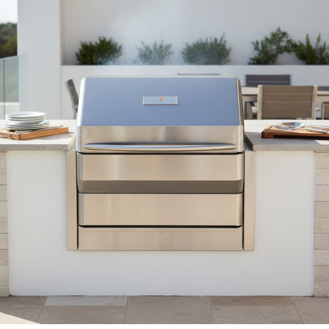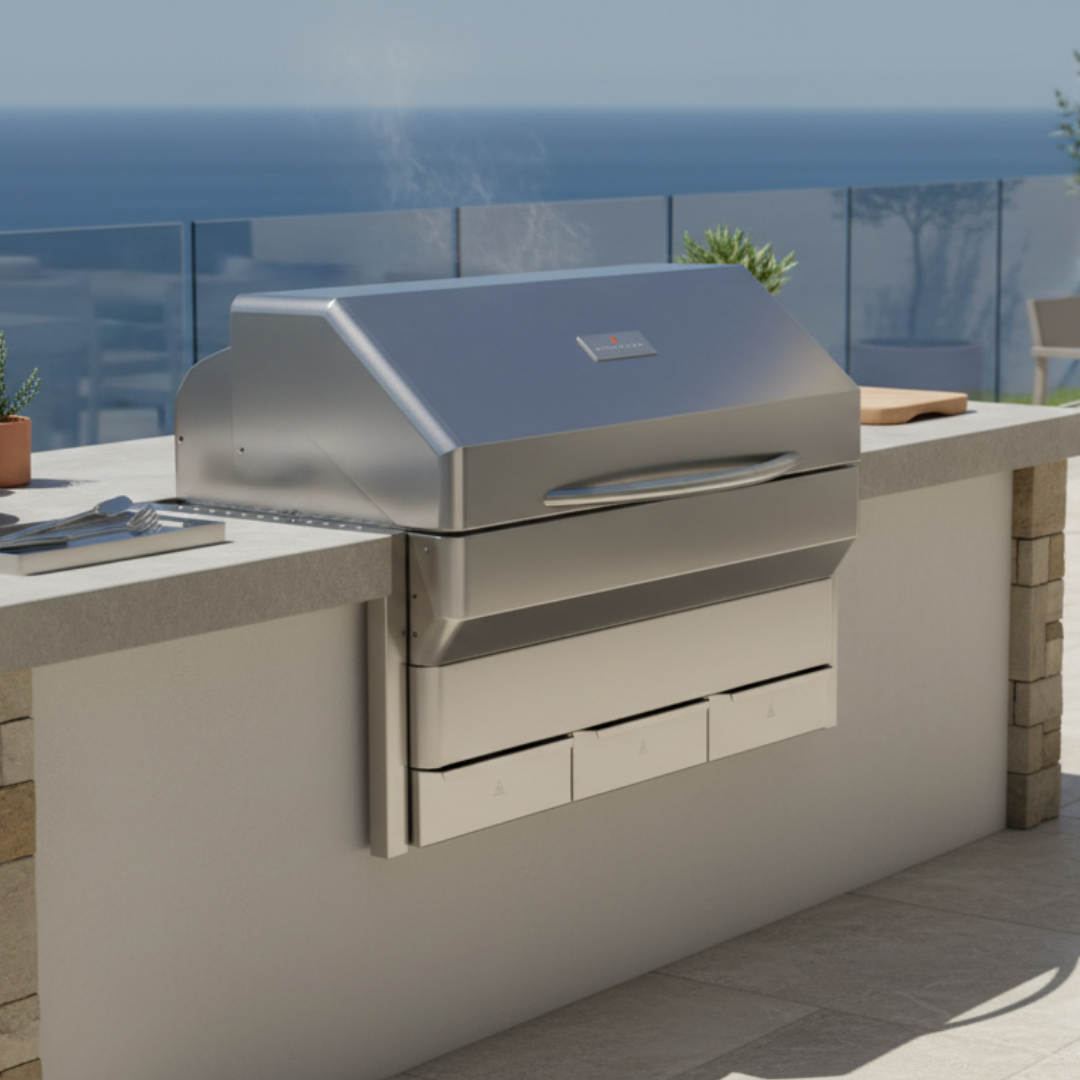 When designing your outdoor patio don’t forget to include the perfect Grill. Your ideal Grill will depend on your outdoor space. That is why we offer a full selection of luxury gas grills that are sure to fit your patio needs. We offer high-end accessories, including grill lights, infrared burner systems and many other extras to complete your custom outdoor kitchen. Our built-in luxury gas grills range in size from 24”-36” and are available with an optional rotisserie system. We also offer built in side burners. Place a side burner next to your built in Grill to add extra cooking space in your outdoor kitchen. We offer Grill lights, infared burner systems and many other extras to complete your custom outdoor kitchen. If you are looking for a more conventional Grill that is not built in to your patio we have those as well. We offer compact permanent Grills that are cemented into your patio area and perfect for apartment or condo living. If you are looking for a larger standalone portable Grill we have a selection of those as well. Our Standalone Grills range in size from 24”-36” with an optional rotisserie system. All of our Grills are made of high quality materials and most built in models are available in propane or natural gas options. Shop our full selection of high-end grills & accessories to find the one that suits your patio perfectly.