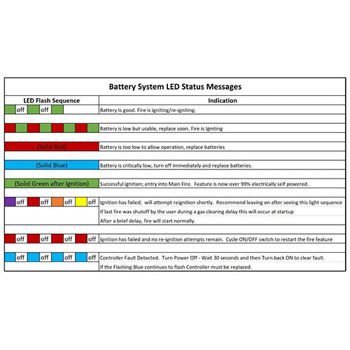 This system integrates a unique LED indicator that will monitor and display the status of the fire and ignition process. Flip the switch to on, your fire will start lighting, and your LED indicator will turn from yellow to a green color when the fire has been successfully started.
