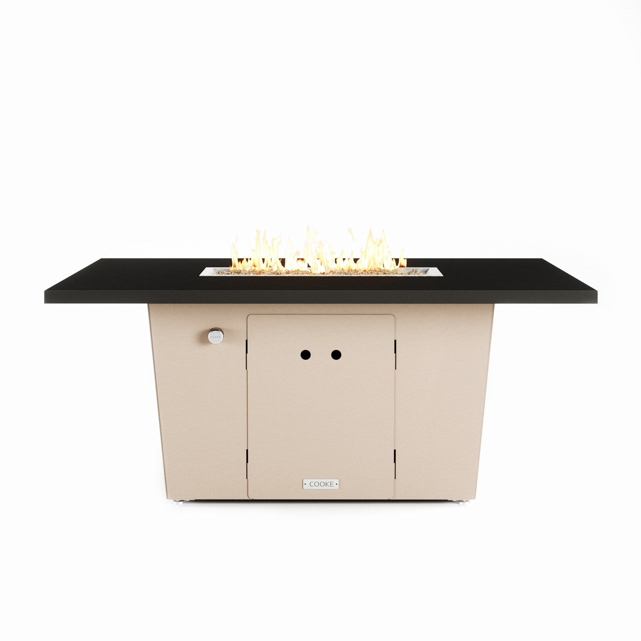 The 52" x 36" table top is the perfect medium size table and accommodates seating up to 4-6. Our customers love this table's stain resistant aluminum or granite table top which has plenty of room for small plates and drinks. COOKE produces some of the finest fire pit tables in the industry which can be seen in the level of detail brought to the table top surface.