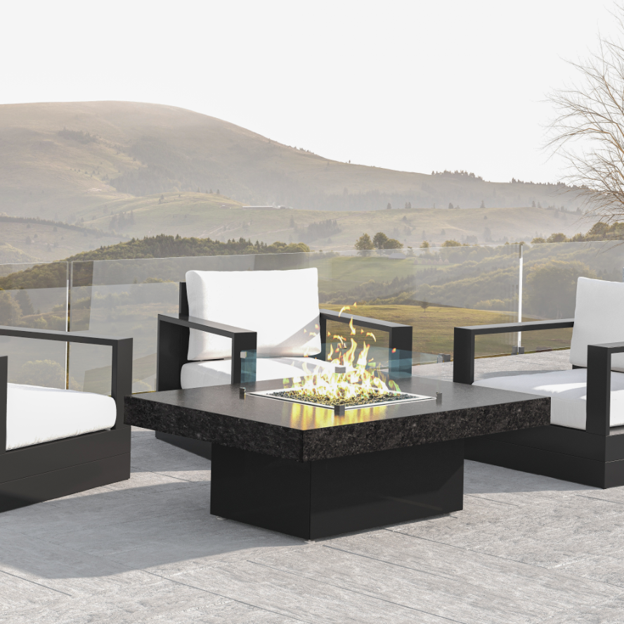 The 48" x 36" is great rectangular size and accommodates seating up to 4. Our customers love this table's stain resistant aluminum, granite, or real marble table top which has plenty of room for plates and drinks. COOKE produces some of the finest fire pit tables in the industry which can be seen in the level of detail brought to the table top surface. Finally, a fire pit table with a premium table top! Cover up the fire pit with the stainless steel burner lid and this table doubles as a premium outdoor lounge table.