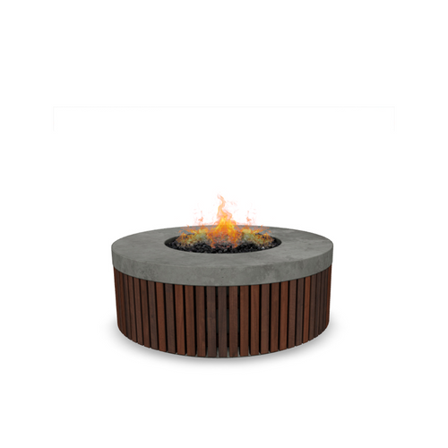 At 48" in diameter, the Hampton is both a stunning focal point and a reliable heat source, designed to anchor patios, garden lounges, or rooftop terraces. The handcrafted concrete top is finished using Prism’s custom patina process, while the wood-wrapped exterior adds warmth, texture, and elevated style.