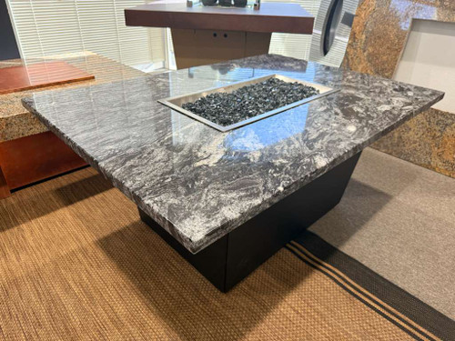 Elevate your outdoor living space with the Palisade Fire Table, featuring a stunning Blizzard Granite Top paired with a sleek black Palisade base. Designed for durability, luxury, and functionality, this fire feature brings both warmth and modern style to any setting.